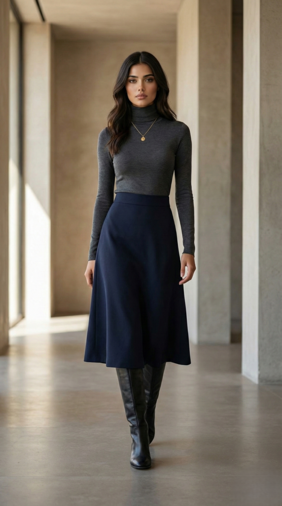 8. Minimalist Turtleneck with Midi Skirt